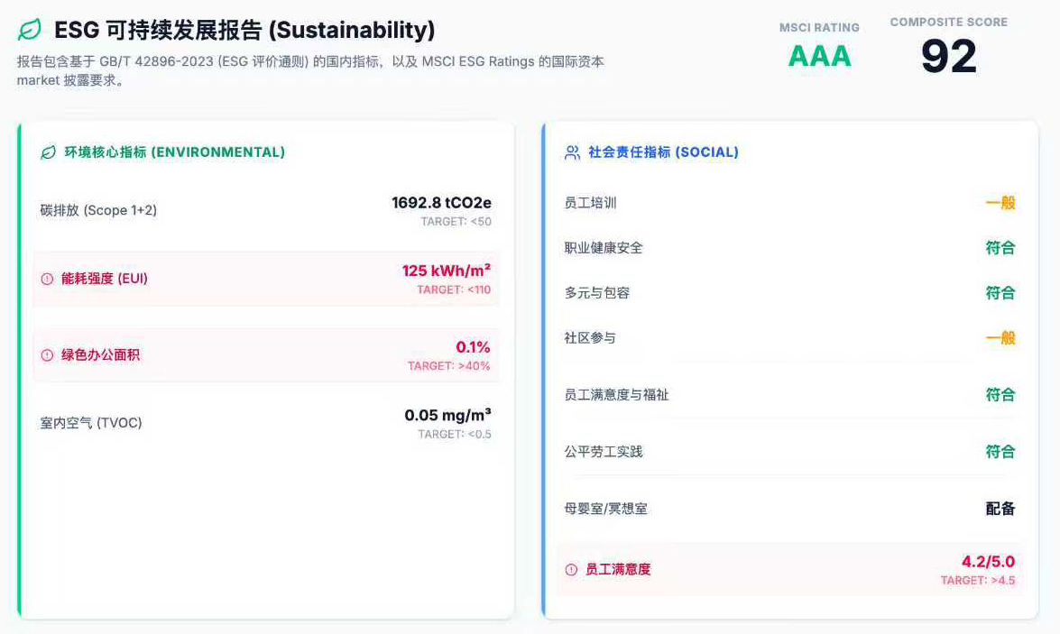 实时监控空间利用率、闲置面积碳排放等核心ESG指标。
